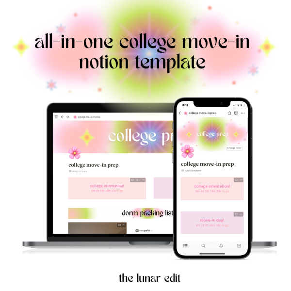 College move-in season is right around the corner & this Notion template will make sure you don't forget a single thing! Avoid stress and last minute shopping with features such as: